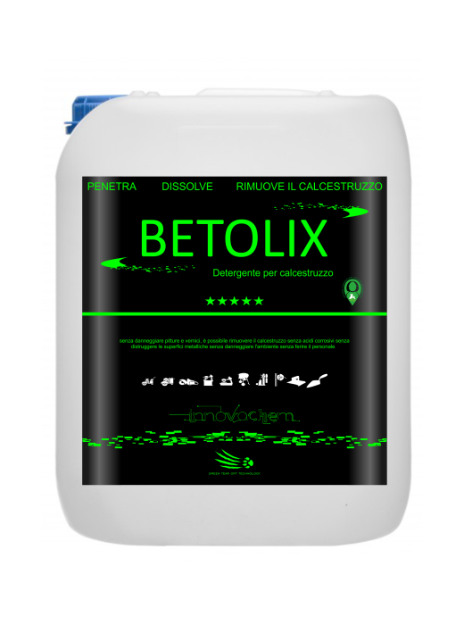 La pulizia delle superfici o attrezzature della costruzione dal calcestruzzo dopo la ristrutturazione non è mai stata così facile, poiché il prodotto per la rimozione del calcestruzzo si dissolve ed elimina tracce di cemento essiccato e calce formate durante i lavori di costruzione. Betolix è un moderno solvente del calcestruzzo dai ciottoli, che ha ottenuto opinioni positivi sia dai dipendenti delle società di costruzioni che da persone esterne al settore. Il prodotto rimuove il calcestruzzo essiccato nonché le macchie e gli schizzi di calcestruzzo fresco da varie superfici.
